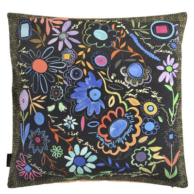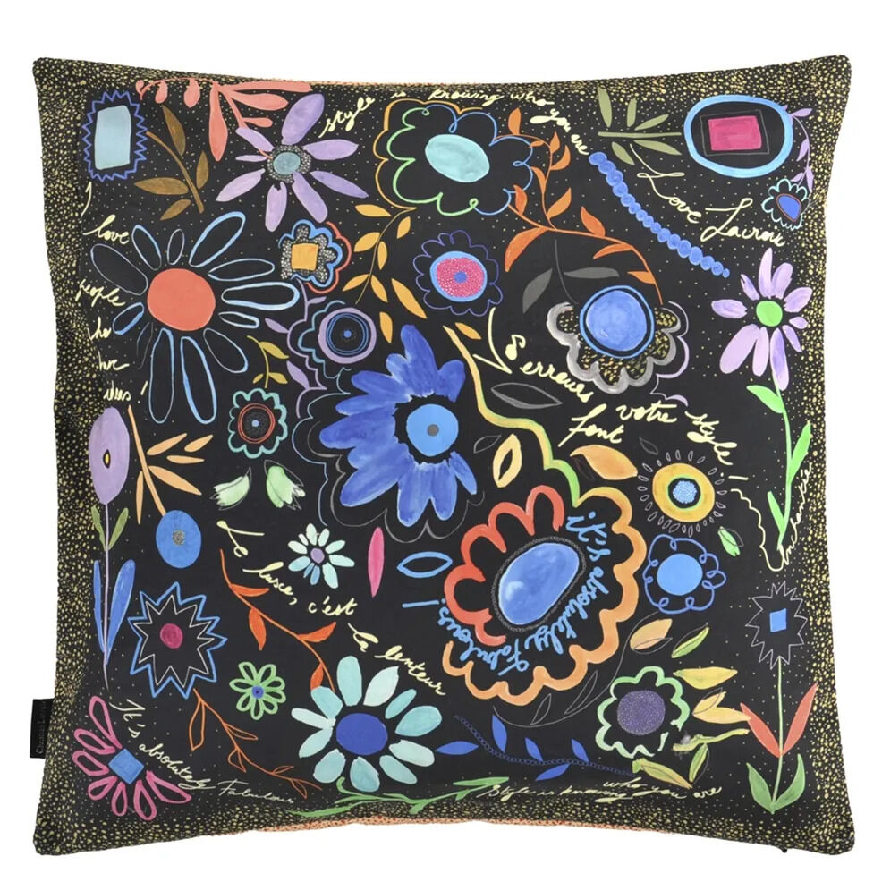 This delightful cushion by Christian Lacroix Maison features playful floral renderings onto black, switching to a paler colourway on the reverse. Digitally printed onto a smart cotton satin. All our cushions come with a luxurious feather pad.