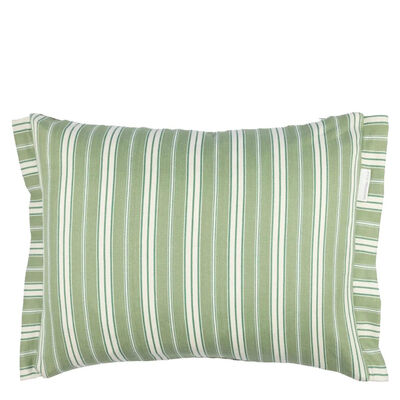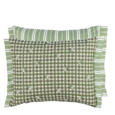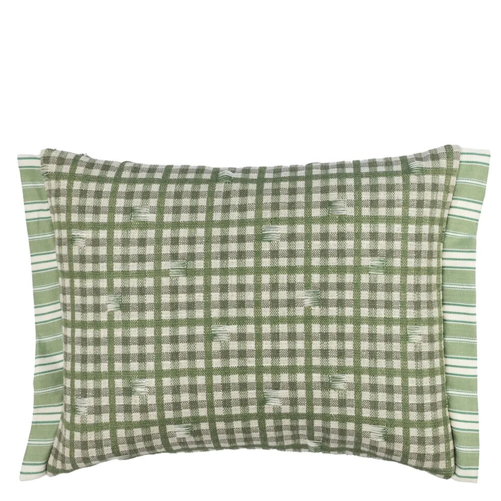 Ce charmant petit coussin rectangulaire est confectionné dans un vichy tissé vert émeraude, agrémenté d’un délicat travail de fils tirés. Le verso est coordonné et souligné d’un galon Conduit Stripe en céladon. Veuillez noter que les fils tirés font partie intégrante du design ; il convient donc de manipuler le coussin avec précaution afin d’éviter tout accroc ou tirage.