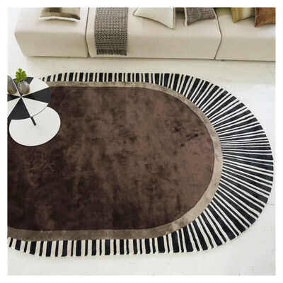 Un tapis ovale graphique, élégant et saisissant, tufté a la main en viscose et laine ivoire. Une grande section de couleur chocolat foncé est associée a une section plus claire de couleurs naturelle, grémentée d’un détail graphique décalé en rayures. Ce tapis d’intérieur sophistique est proposé dans une seule grande taille ovale et apportera une touche spectaculaire a votre intérieur. Doté d’un dos en coton, nous recommandons toutefois d’utiliser ce tapis avec un sous-tapis antidérapant, en particulier sur les surfaces lisses.